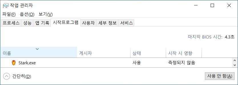 Stark.exe 파일이 실행되었습니다.