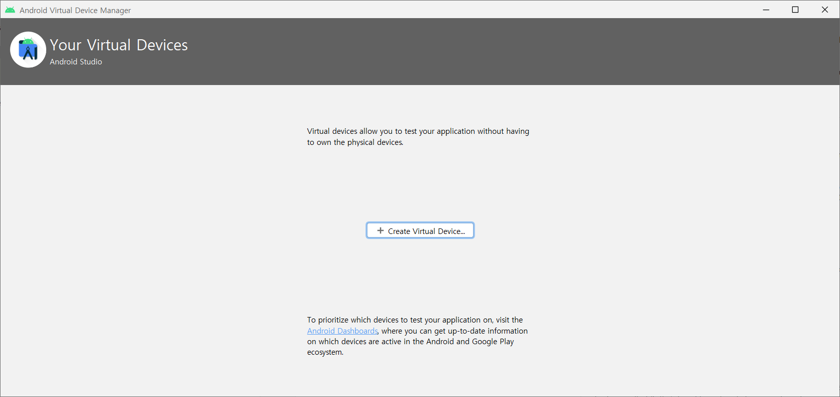 'Create Virtual Device(가상 기기 만들기)'를 클릭해 봅니다.