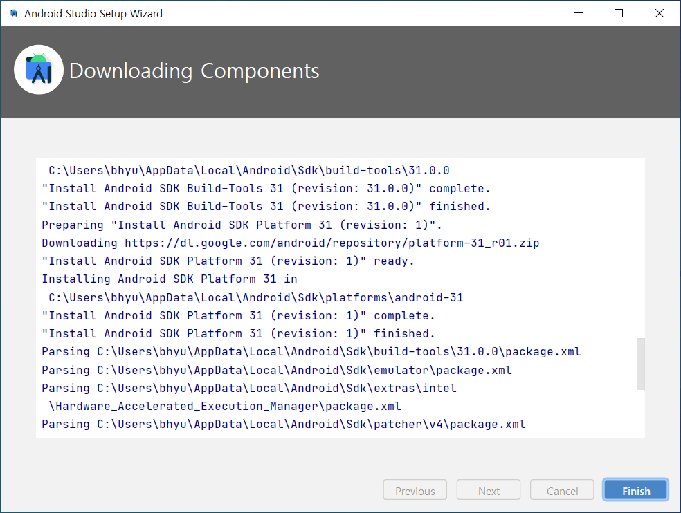 이제 Android Studio Setup Wizard를 마치겠습니다!