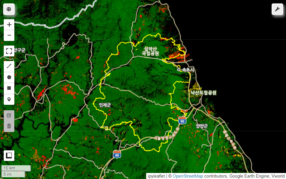 - GEE를 사용하여 설악산 생물권보전지역의 경계를 추출합니다.