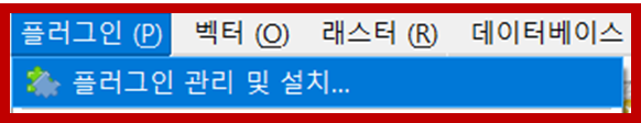 플러그인 설치방법은 다음과 같습니다. QGIS에서 '플러그인 > 플러그인 관리 및 설치'를 클릭합니다.