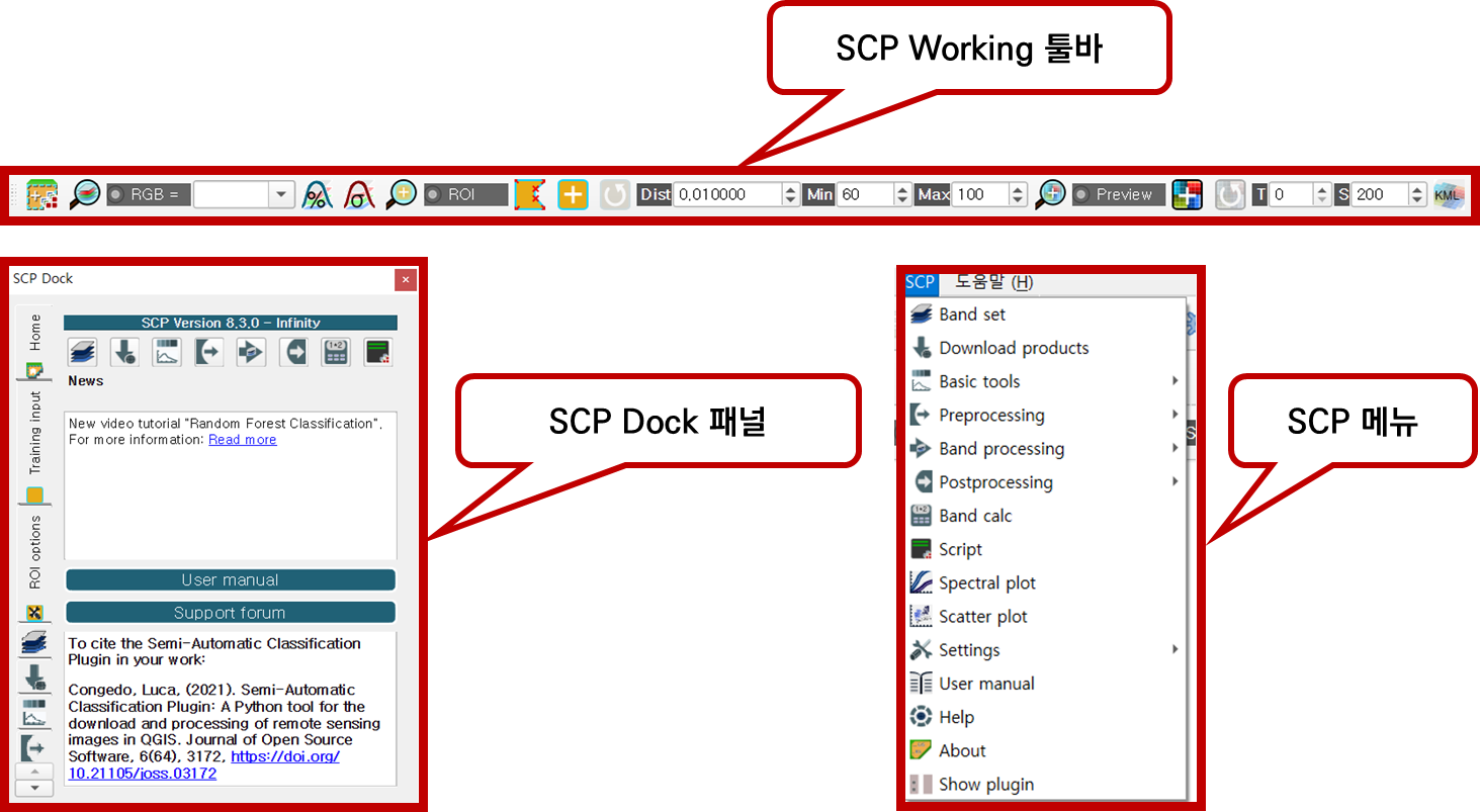 안녕하세요? 이번 글은 QGIS에서 Semi-Automatic Classification Plugin 설치방법을 소개해 보겠습니다. SCP 플러그인은 원격탐사 영상의 지도학습 분류(supervised classification), 이미지 다운로드 및 전·후처리 도구를 제공합니다.