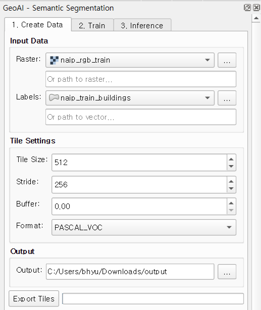 - Create Training Data: 학습용 이미지 칩 생성