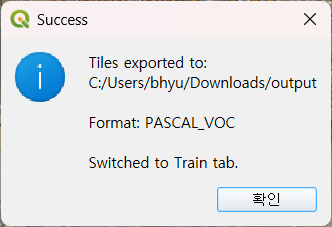 - 결과: 지정된 폴더에 이미지와 라벨 칩들이 생성되며, 이는 다음 단계인 모델 학습의 기초 자료가 됩니다.
